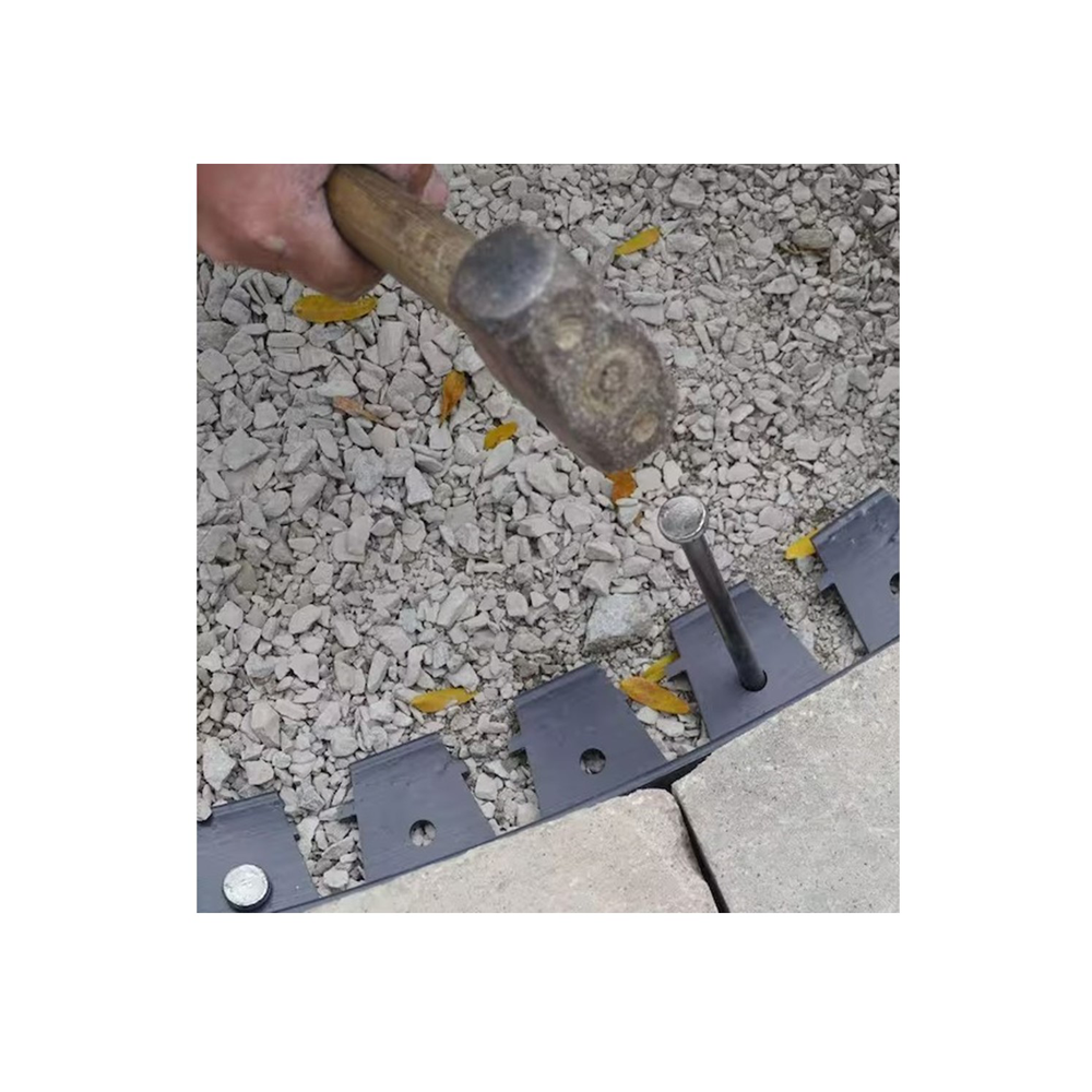 Secure anchoring using 10″ landscape spikes for reliable edge retention